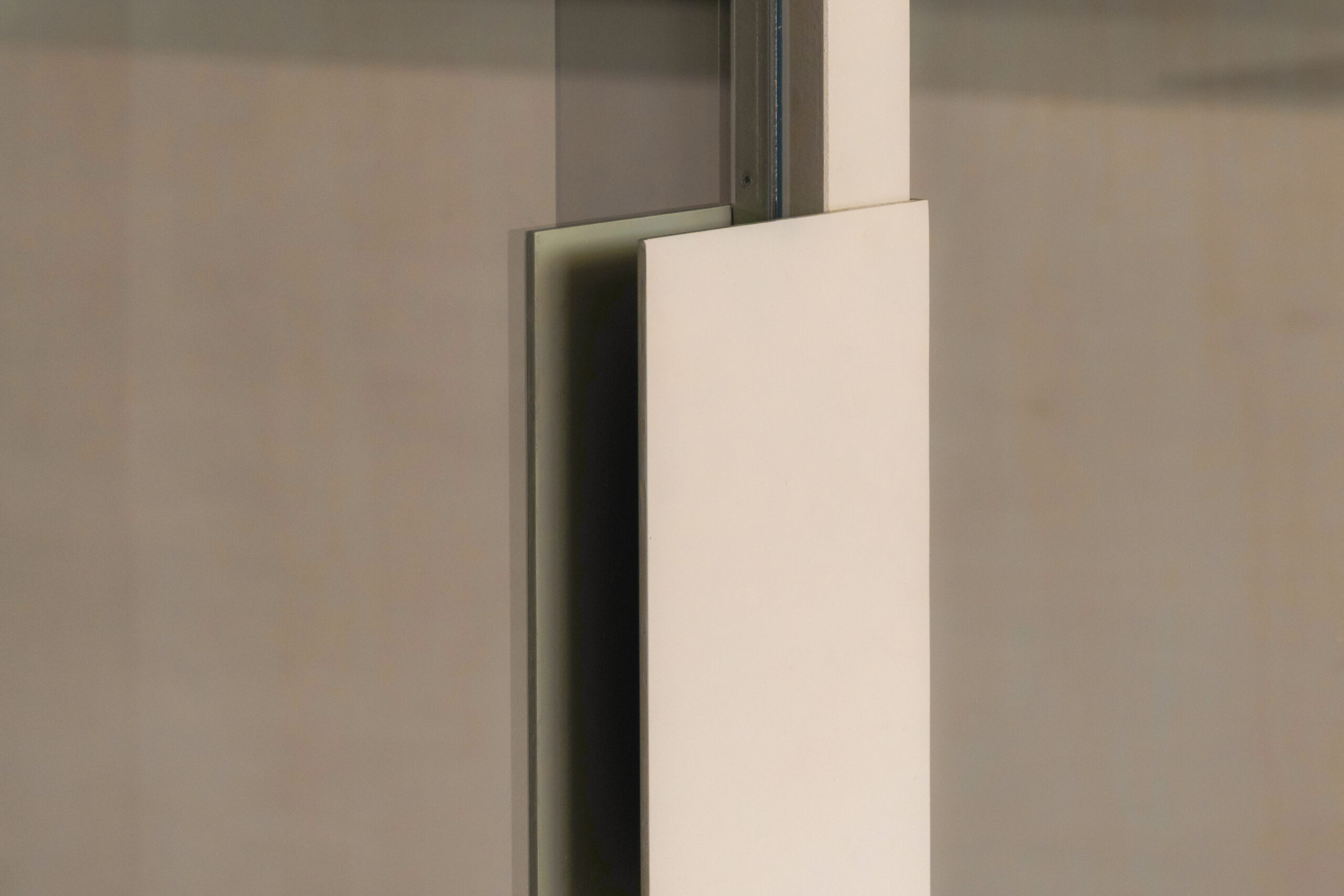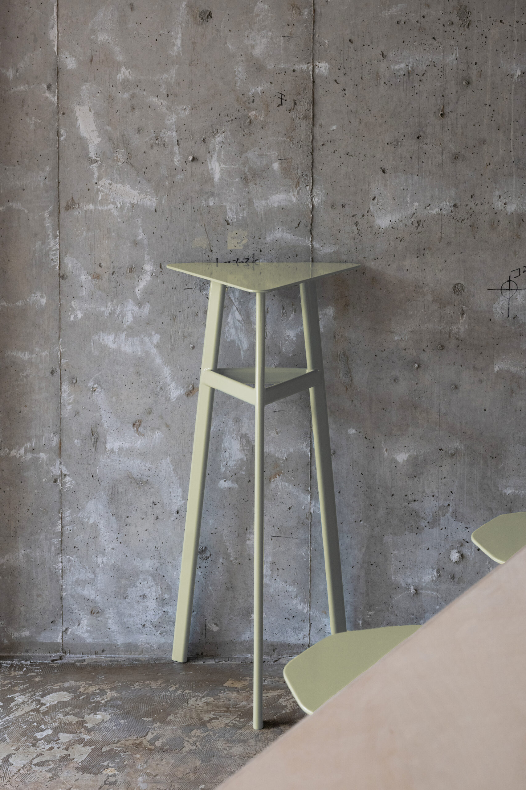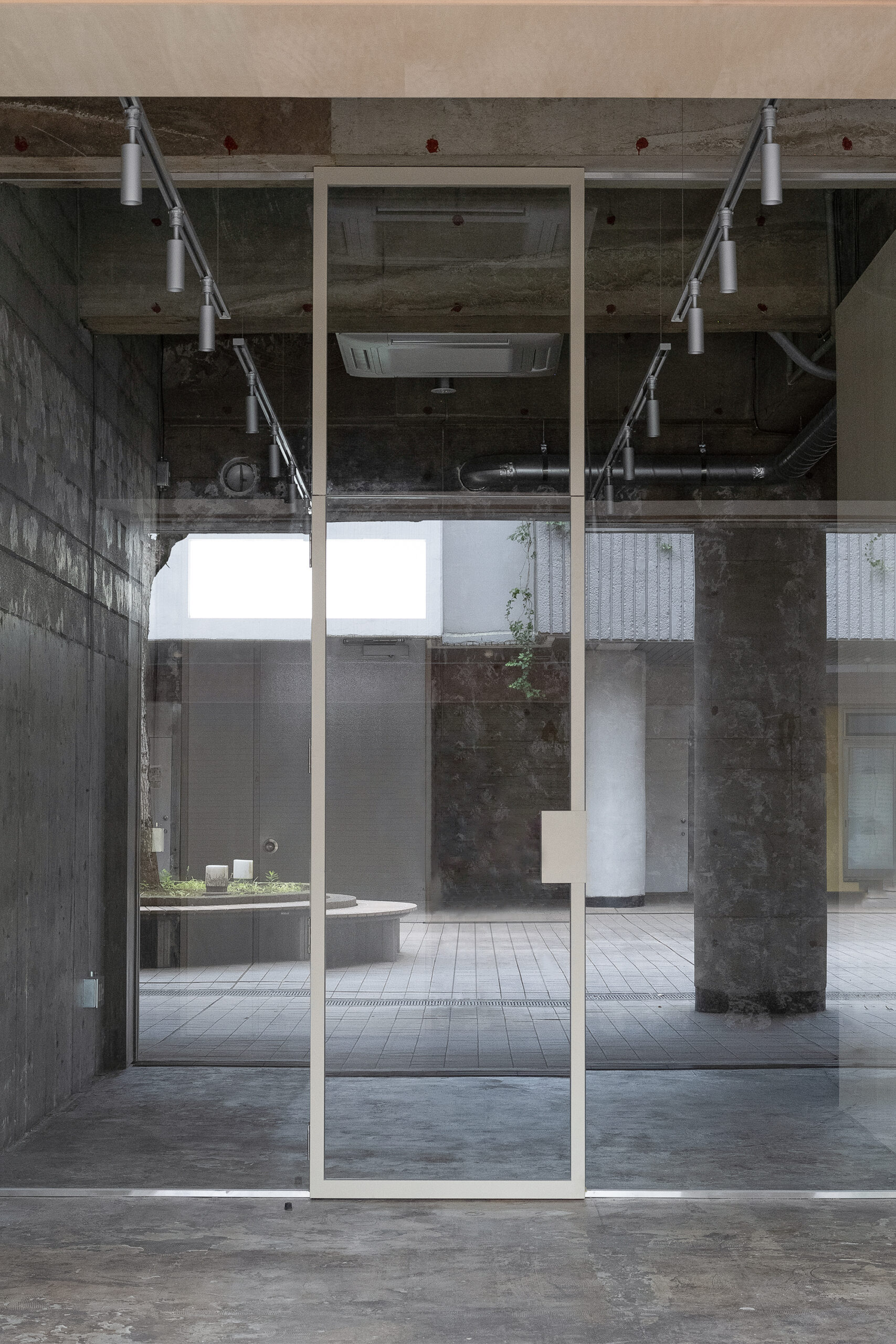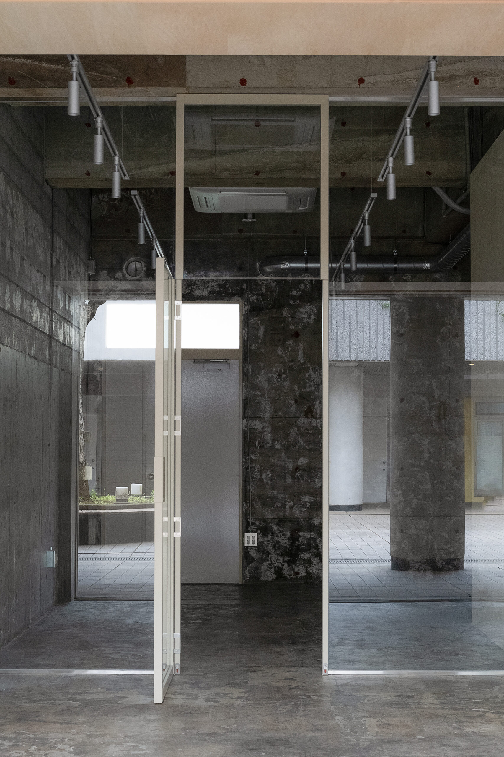 団地の一角に設けられた、クラフトビールスタンド。周囲には住戸が連なり、買い物や通勤といった日常の動線が交差する場所に位置しています。外から目的を持って訪れるというよりも、通り抜けや待ち合わせ、ふと立ち止まる行為が自然に起こる環境として、この場所を捉えました。店内は、構造体をそのまま露出させたコンクリートの躯体を背景に、木製のカウンターと什器を最小限に挿入しています。新しくつくり込むのではなく、すでにある構造とスケールを受け止めながら、成立する輪郭を探っています。カウンターは、立つ・腰掛けるといった使い方を明確に定めず、団地の共用部に置かれた家具の延長のような存在として設えています。スツールやテーブルも特注で製作し、形や寸法を抑えることで、使われ方が固定されない状態としました。ガラス越しに見える内部の様子や、昼と夕方で変わる光の入り方も、特別な演出として扱うのではなく、団地の時間の流れの一部としてそのまま受け止めています。この店は、目的地として構えた場所というよりも、団地の中に元からあった風景のひとつとして存在することを目指し、住人や通行人が、それぞれの距離感のまま関われる、生活の延長線上にある存在です。