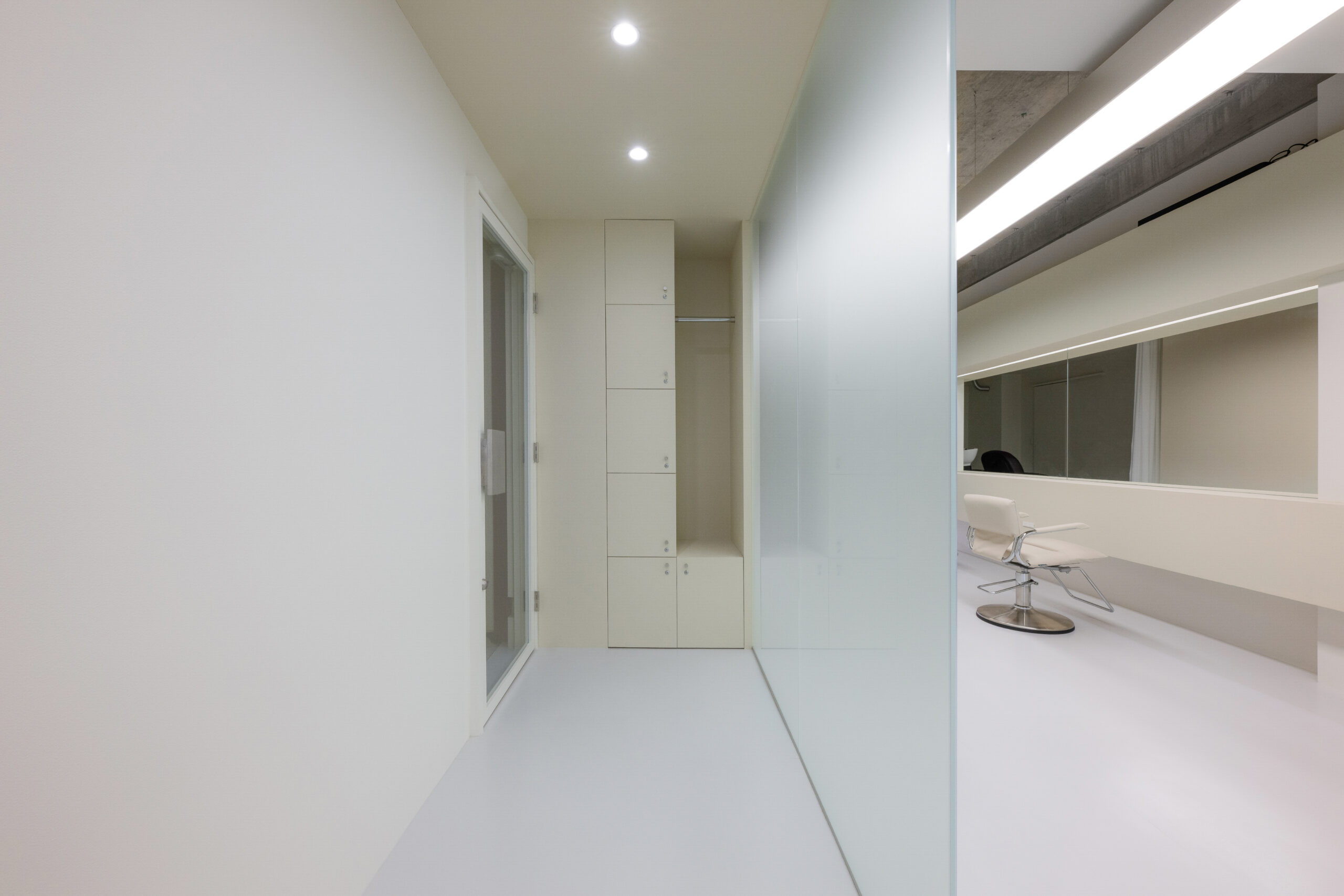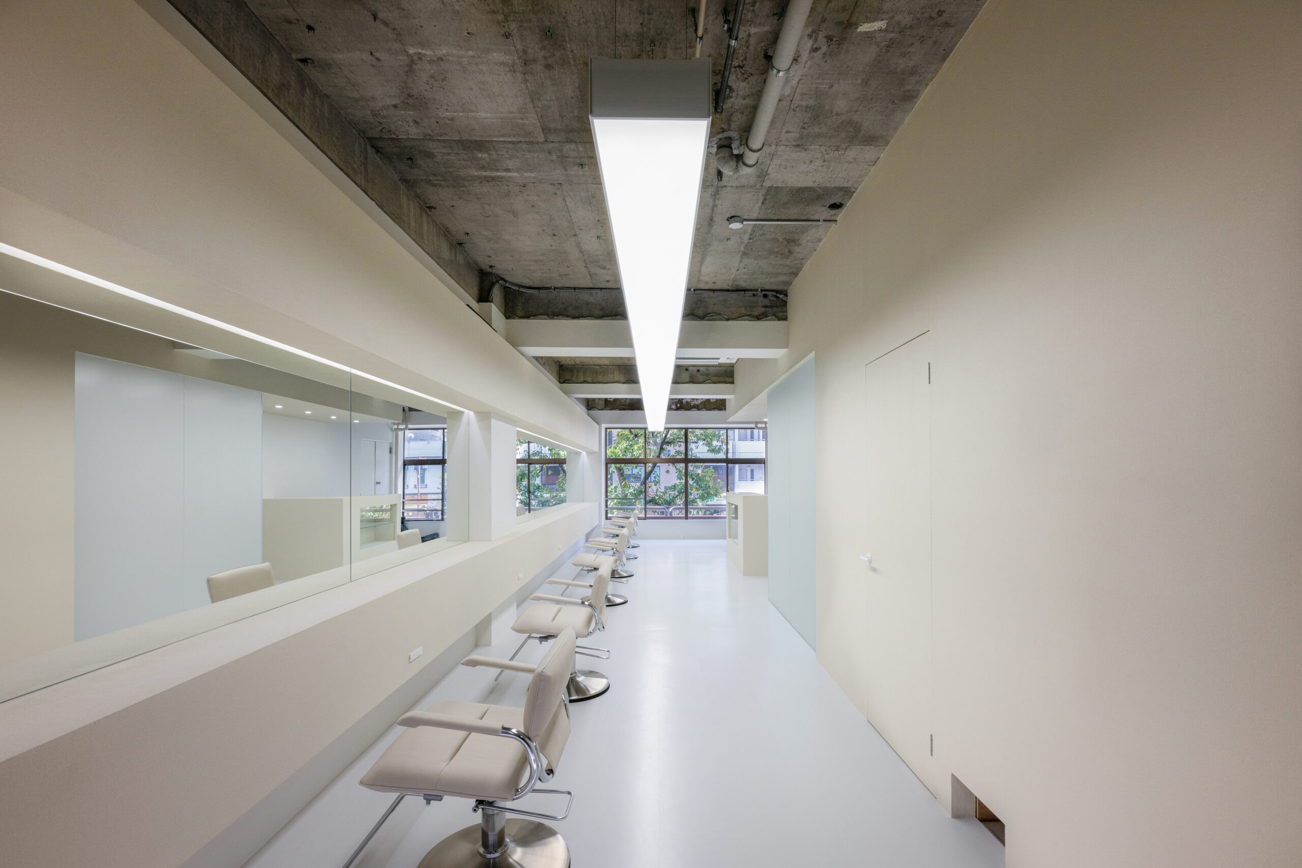 細長い区画を活かした、美容室の空間設計。